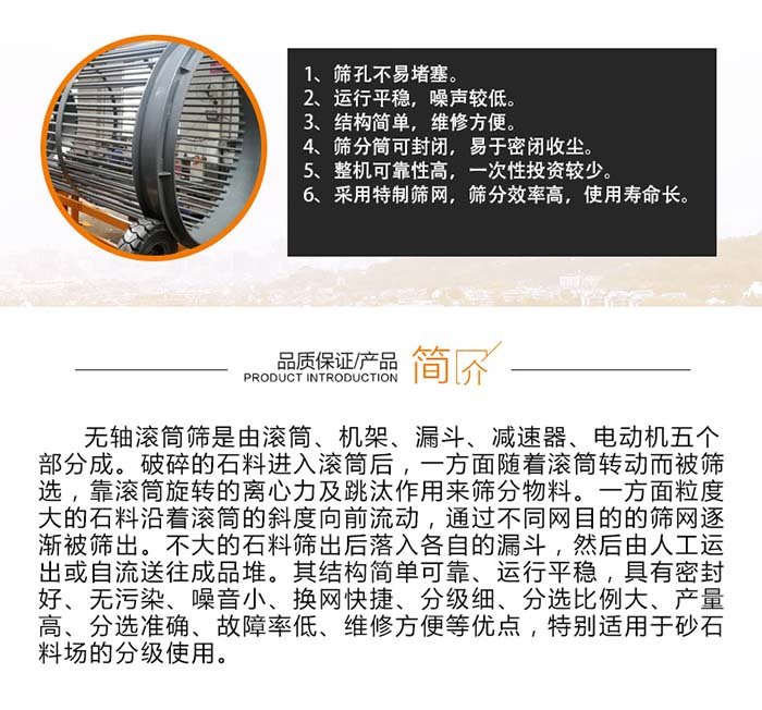 .細(xì)節(jié)決定成敗,鞏義吉宏機(jī)械廠(chǎng)家無(wú)軸滾筒篩的每一道做工都堅(jiān)持細(xì)致化,堅(jiān)持對(duì)用戶(hù)負(fù)責(zé),對(duì)產(chǎn)品負(fù)責(zé),對(duì)售后負(fù)責(zé),為用戶(hù)提供更高品質(zhì)、更值得信賴(lài)的高性?xún)r(jià)比無(wú)軸滾筒篩,歡迎大家隨時(shí)咨詢(xún)選購(gòu)!廠(chǎng)家地址:河南省鞏義市永安路北段,聯(lián)系電話(huà):0371-64087888。