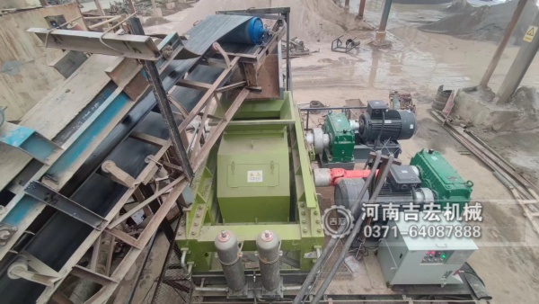 風(fēng)化石破碎制砂機(jī)主要由輥輪組成,機(jī)架部分,壓緊和調(diào)節(jié)裝置以及傳動(dòng)裝置等部分組成。驅(qū)動(dòng)裝置由兩個(gè)電動(dòng)機(jī),通過(guò)鏈條傳動(dòng)到槽輪上拖動(dòng)兩輥輪相對(duì)旋轉(zhuǎn)運(yùn)動(dòng)來(lái)碾壓破碎物料。通過(guò)調(diào)整破碎輥之間的間隙,可以控制出料粒度的大小。這種設(shè)備通常用于風(fēng)化石等物料的中細(xì)碎作業(yè),能夠有效地將石塊破碎成所需的粒度,滿足制砂的要求。
