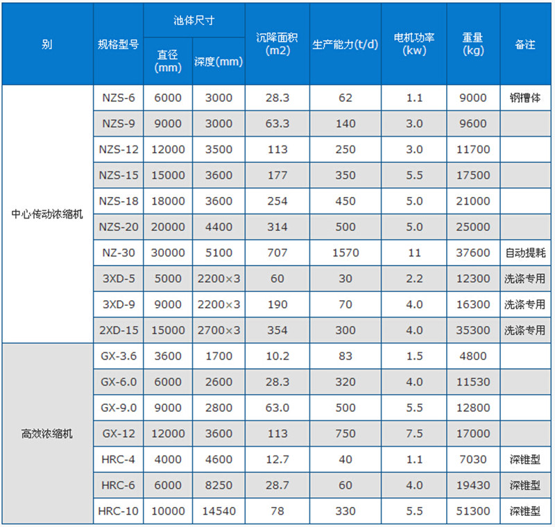 高效濃縮機(jī)技術(shù)參數(shù)